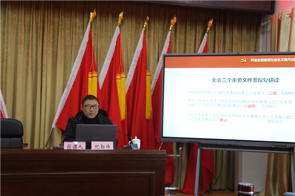 宣講會(huì )上,紀勤煒緊緊圍繞黨的十九屆五中全會(huì )精神,從回顧新發(fā)展成就、闡述新發(fā)展背景、立足新發(fā)展階段、構建新發(fā)展格局和貫徹新發(fā)展理念五個(gè)方面,對黨的十九屆五中全會(huì )精神進(jìn)行了深入細致的解讀。