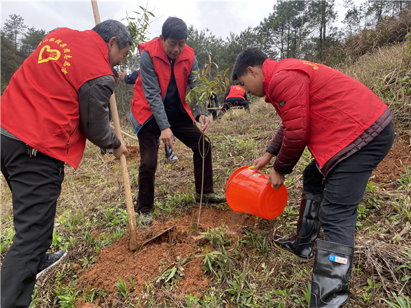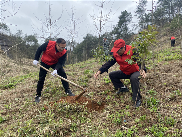在植樹(shù)現場(chǎng),大家團結協(xié)作,三人一組、五人一隊,在歙西林場(chǎng)工作人員的悉心指導下,揮鍬鏟土、挖坑植苗、培土壓實(shí)、灌溉澆水,處處呈現一派熱火朝天的勞動(dòng)景象。經(jīng)過(guò)大家的共同努力,1000余株楓香、檫樹(shù)等共建友誼之樹(shù)錯落有致,迎風(fēng)挺立,為春光里再添生機活力。