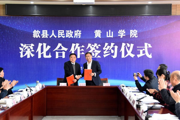 4月9日,歙縣與黃山學(xué)院簽署地校深化合作協(xié)議,黃山徽投集團作為歙縣國有企業(yè)代表與黃山學(xué)院旅游學(xué)院簽署戰略合作協(xié)議,共同開(kāi)啟“優(yōu)勢互補、資源共享、互惠雙贏(yíng)、共同發(fā)展”的合作新篇章。