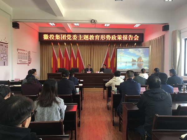 為深入學(xué)習貫徹習近平新時(shí)代中國特色社會(huì )主義思想和習近平總書(shū)記關(guān)于經(jīng)濟方面的重要論述,10月30日,黃山徽投集團黨委舉行“不忘初心、牢記使命”主題教育形勢政策報告會(huì )。集團黨委副書(shū)記、公司副董事長(cháng)、總經(jīng)理吳光玉主持會(huì )議,集團班子成員及公司部分黨員職工參加會(huì )議。