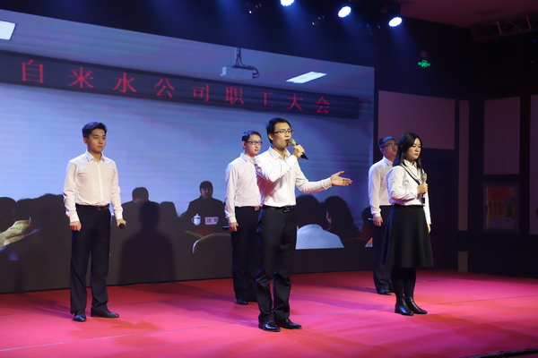 會(huì )議的第二階段由集團及各子公司職工自創(chuàng )自演了一場(chǎng)主題為《揚帆起航 逐夢(mèng)前行》的文藝演出,節目形式多樣、精彩紛呈,會(huì )場(chǎng)內不時(shí)發(fā)出陣陣掌聲。最后,在全場(chǎng)同唱《歌唱祖國》的歌曲中結束了整場(chǎng)會(huì )議。