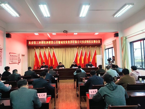 根據縣委的統一部署,2020年3月24日下午,縣委第三巡察組向徽投集團黨委反饋巡察情況??h人民政府副縣長(cháng)汪洪濤出席會(huì )議并講話(huà),縣委第三巡察組組長(cháng)張國忠代表巡察組反饋巡察情況,集團黨委書(shū)記、董事長(cháng)洪筱明主持會(huì )議并作表態(tài)發(fā)言。