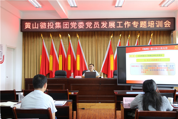 5月16日,黃山徽投集團黨委舉行黨員發(fā)展工作專(zhuān)題培訓班,邀請縣黨群活動(dòng)中心主任周福財主任為集團全體黨務(wù)工作者進(jìn)行專(zhuān)題培訓。集團黨委副書(shū)記、紀委書(shū)記吳維主持會(huì )議,集團各支部的黨務(wù)工作者參加會(huì )議。